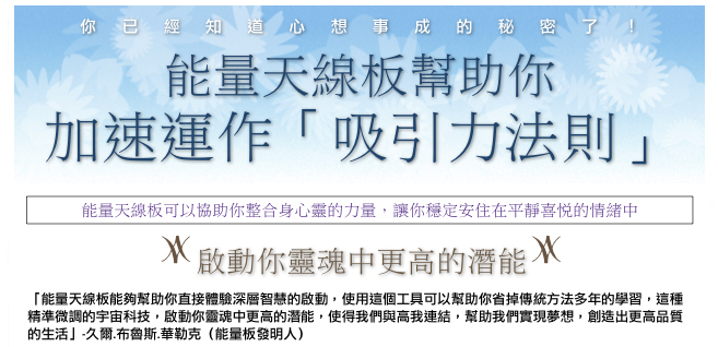 在網路上推廣能量天線板(能量板)已快三年了,釆渝去美國上了能量天線板創造者-華勒克先生的課程,深刻地體驗到能量板強大的療癒效果,特別是在靈魂與前世的療癒以及能量轉化部份,很高興得到華勒克先生的同意,可以將他最新整合的靈魂療癒法分享給我的學生。