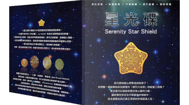 星光碟的能源過濾功能可以保護您的氣場不受這些混亂能量的影響。星光碟把混亂能量轉化成和諧能量,所以您在身、心、靈三方面都能歸於中心,並且可以有安全感。它幫助您在每一刻都能達到自己最高潛能。